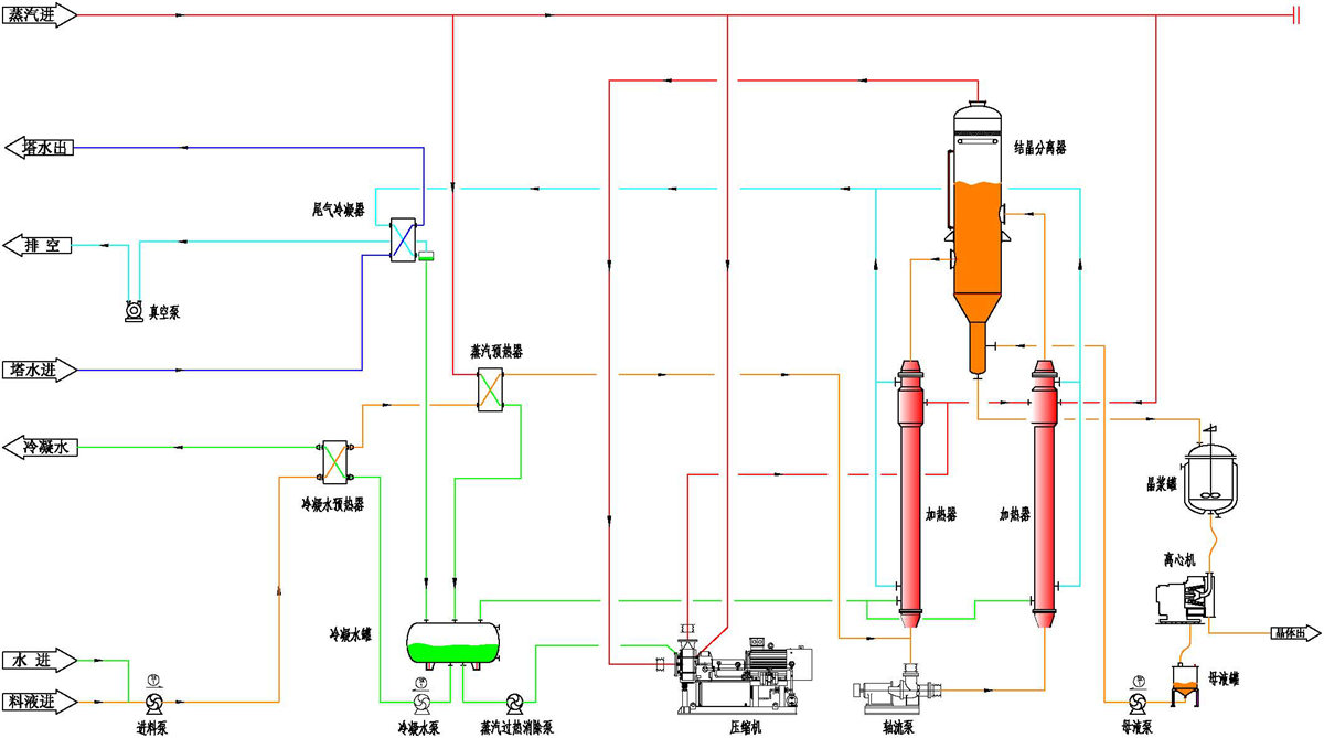 MVR強制循環(huán)蒸發(fā)器適用于物料的蒸發(fā)濃縮或鹽溶液的蒸發(fā)結晶。